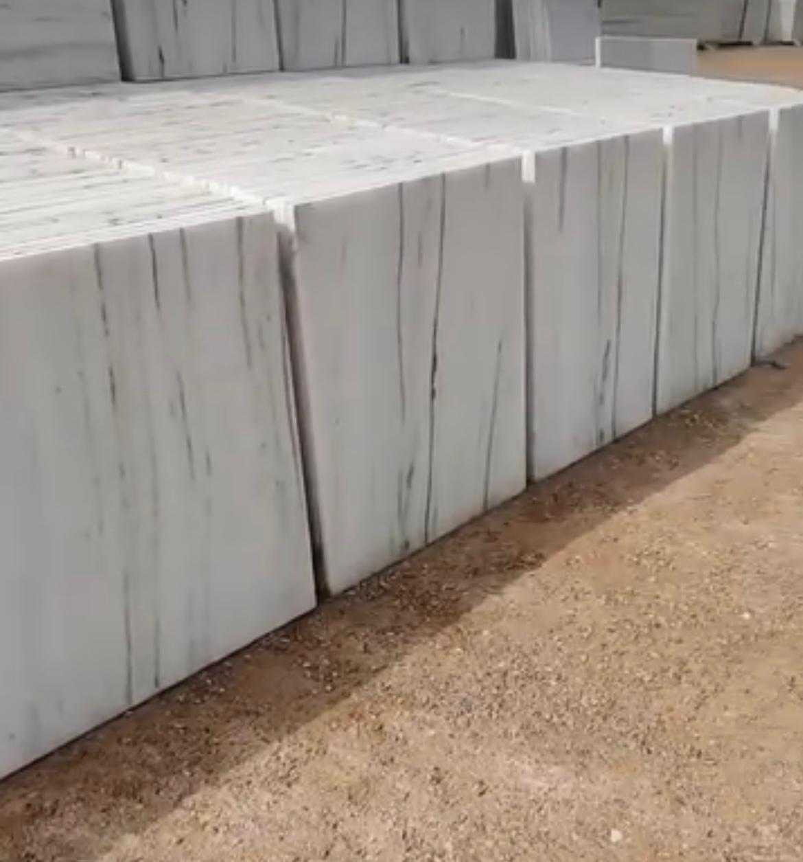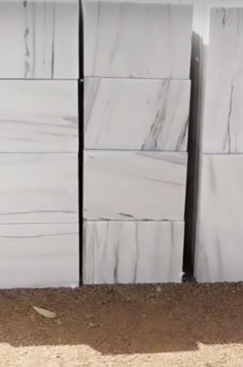 Albeta Marble Tiles feature a creamy white base accented with soft grey and brown veins, radiating natural elegance.