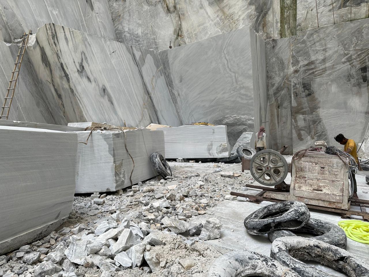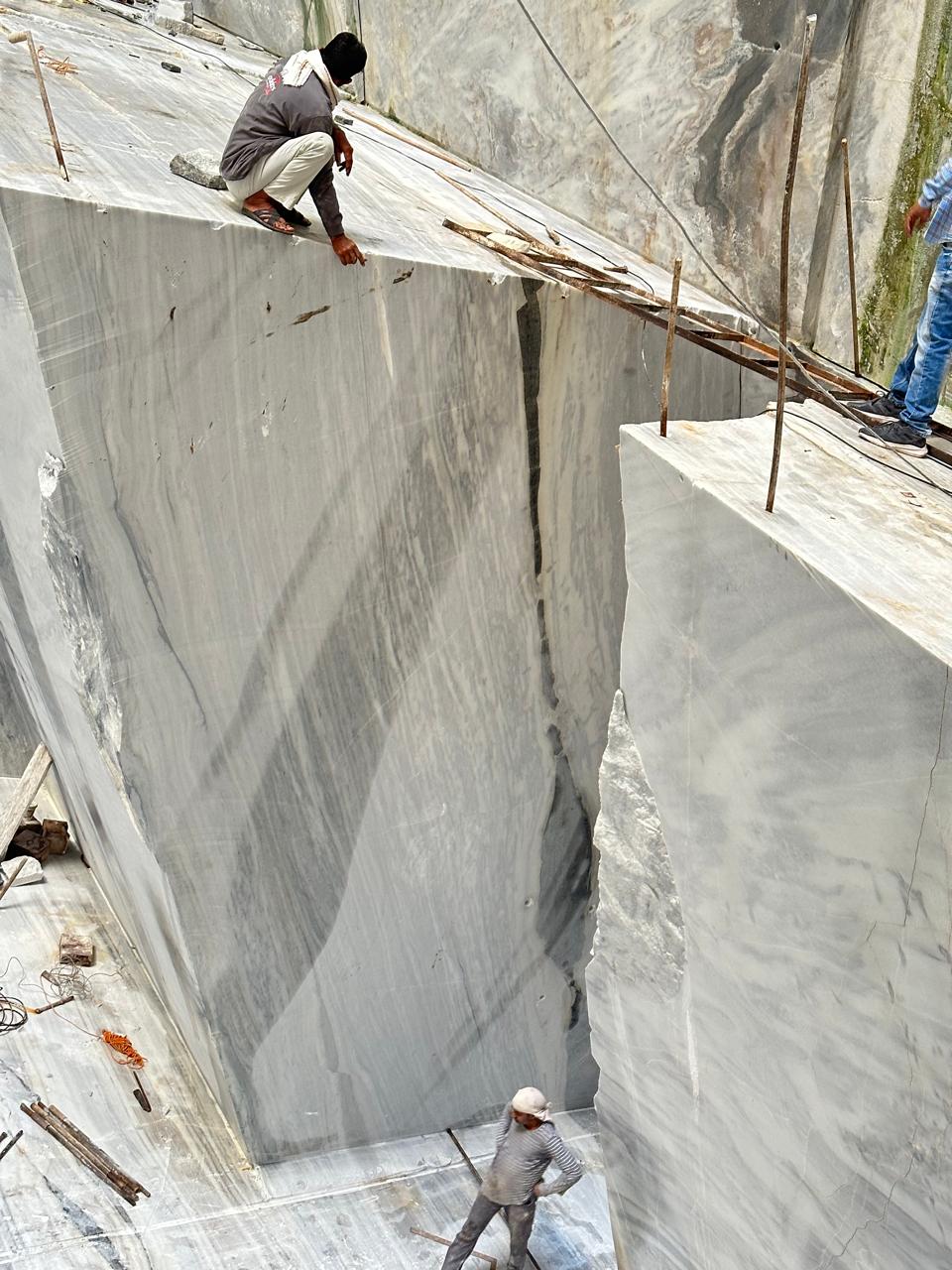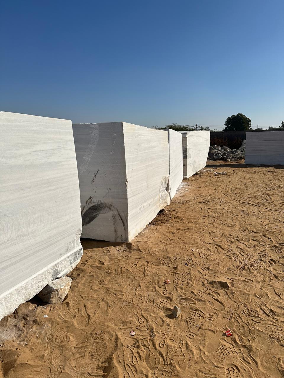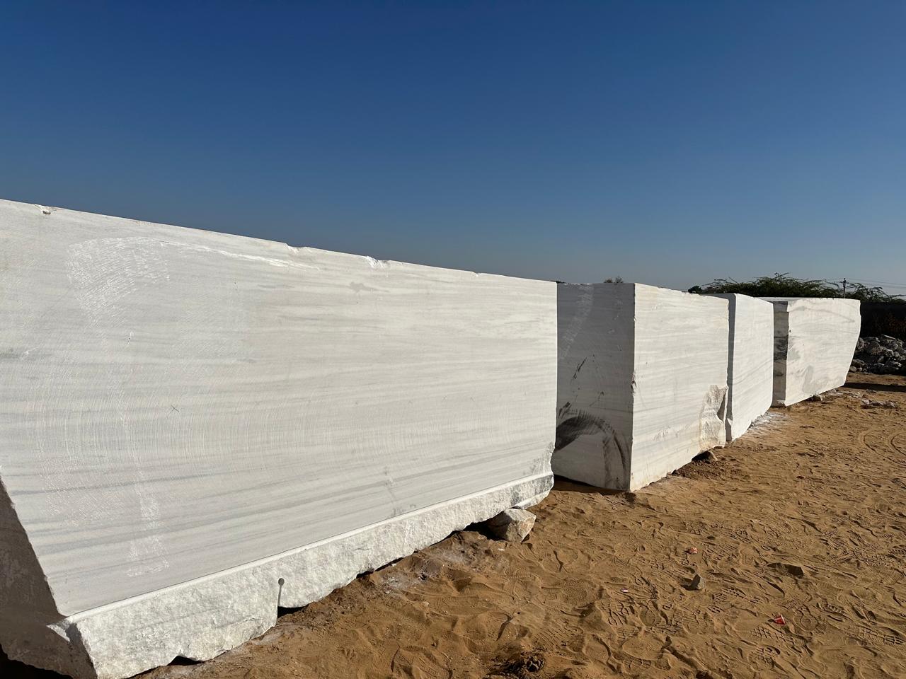 Adanga (Dungri) Marble Blocks feature a soft white base with light grey patterns, offering a classic and refined appearance.